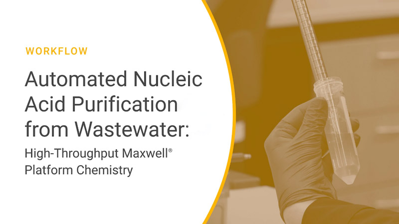 The Maxwell® RSC Enviro Total Nucleic Acid Kit (AS1831) allows you to get purified TNA in 2 hours with vacuum-based direct capture of TNA followed by automated TNA extraction using Maxwell® Instruments. The Maxwell® RSC Instrument can process 1 to 16 samples, and the Maxwell® RSC 48 Instrument can process 1 to 48 samples in a single run. Viral TNA is first captured from wastewater using the PureYield™ Midicolumn and Vac-Man® Laboratory Vacuum Manifold. Then, the lysate is loaded into the Maxwell® RSC Instrument for walkaway RNA extraction. The recommended protocol starts from 40ml of wastewater and results in 40µl of TNA.